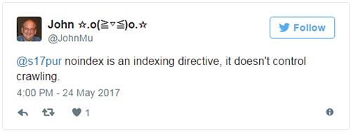 Об этом недавно напомнил Джон Мюллер из Google в своем Twitter, сказал, что «NOINDEX является директивой индексации, но не контролирует сканирование.»