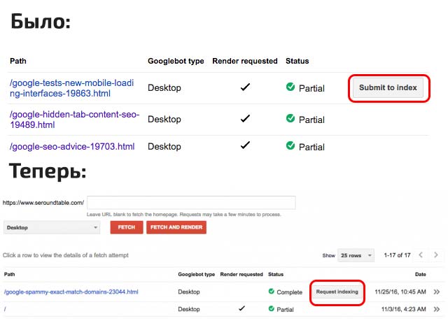Google изменил название кнопки в инструменте «Просмотреть как Googlebot » с «Добавить в индекс» (Submit To Index) на «Запросить индексирование» (Request Indexing). Это изменение появилось на прошлой недели, но все больше и больше веб-мастеров теперь заметили нововведение.