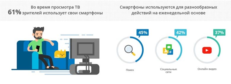 В 2016 году на каждого жителя Украины в среднем приходится уже 1,2 подключенных к интернету устройств, что на 58% выше показателя 2013 года. 61% соотечественников пользуются смартфоном во время просмотра ТВ, а 45% предпочитают искать информацию о товарах и услугах именно с помощью мобильного телефона.