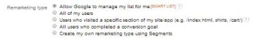 Создание такого списка, довольно просто, опять заходим в «Список аудиторий», где выбираем «Разрешить Google управлять моим списком», который расположен под «Тип Ремаркетинга» и сохраняете его — готово.